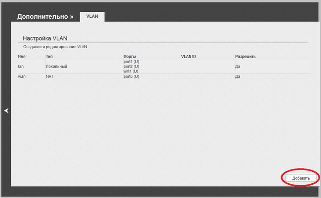 В открывшемся меню щёлкните на верхний VLAN (lan).